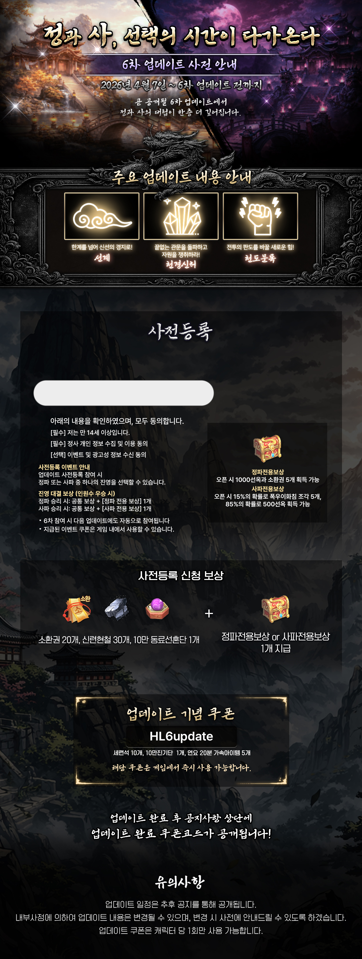 '정과 사, 선택의 시간이 다가온다' 6차 업데이트 사전 안내